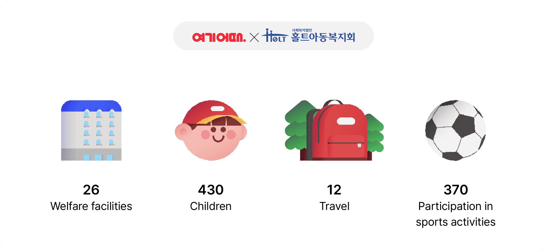 Through the CSR program, which lasted for about two years, approximately 430 children experienced unforgettable travel and leisure. After experiencing the coronavirus for a long time, children in particular had to spend a longer and more boring stay at home. They were the youngest customers who engaged in physical activities with friends, visited new travel destinations, and thoroughly enjoyed YEOGIEOTTAE's services.