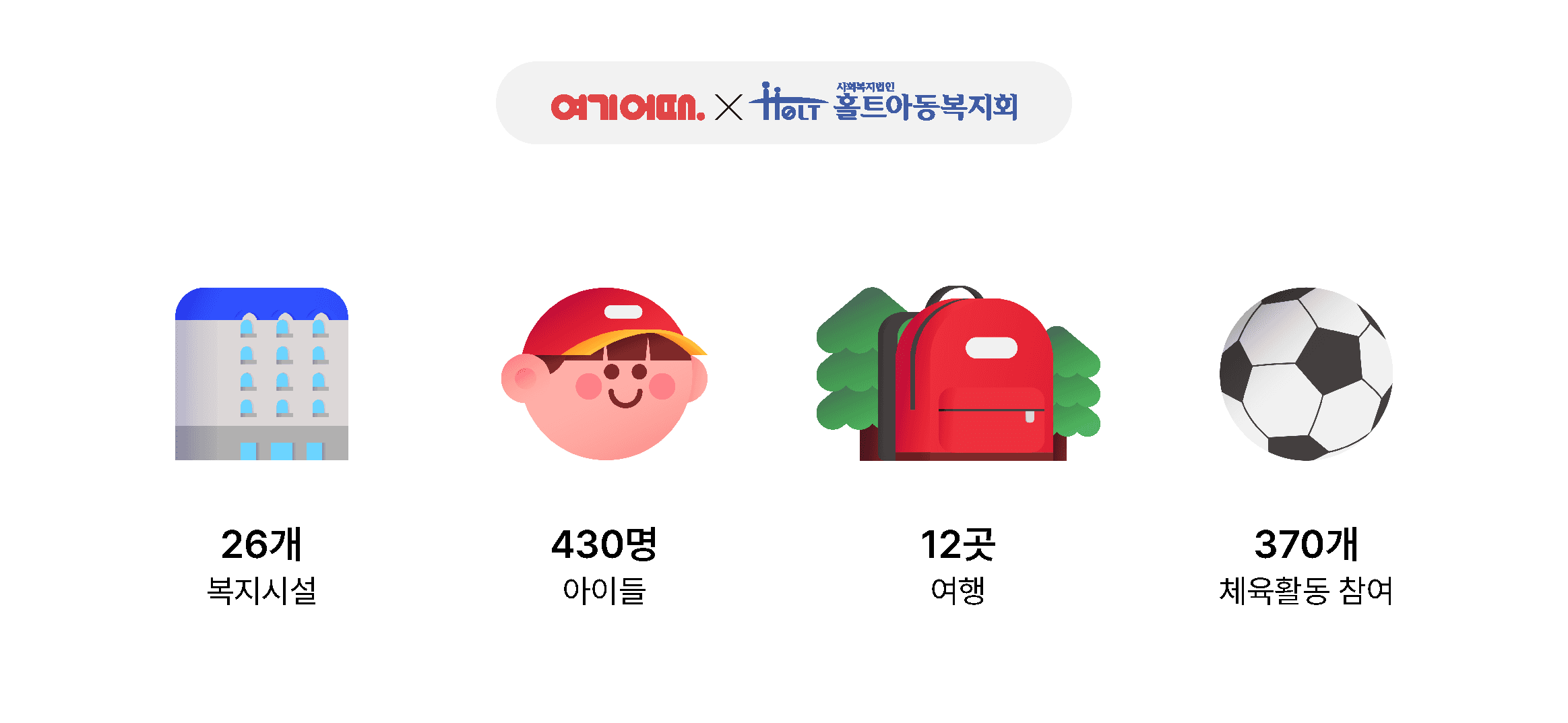 2년 여간 이어진 CSR 프로그램을 통해 약 430명의 아이들이 잊지 못할 여행과 여가를 경험했습니다. 오랫동안 코로나를 겪으며 특히 아이들은 더 길고 지루한 '집콕'을 보내야 했는데요. 친구들과 몸으로 부딪히며 체육 활동도 하고, 새로운 여행지도 가보고, 여기어때의 서비스를 제대로 즐겨준 최연소 고객님들이었습니다.